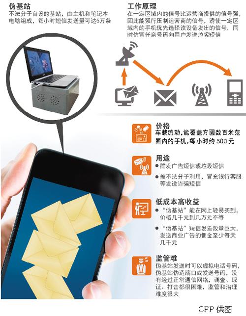 “伪基站”藏车满街跑 向被覆盖手机发诈骗短信