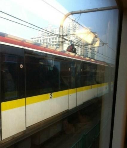 男子早高峰爬车顶 上海轨交3号线迫停半小时(图)