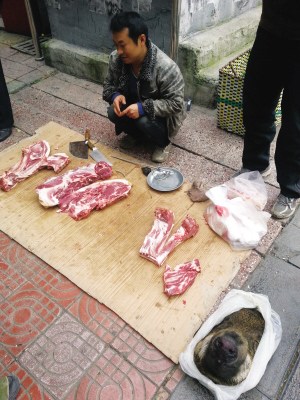 男子闹市路边叫卖“野猪肉” 未检疫安全难保证