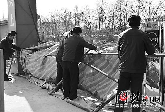 拿到承诺书,工人们开始拆除堵在门口的障碍,农民工老王念叨着“但愿这次说准了。”(燕赵都市报记者刘岚 文/图)