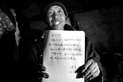 昨日,怀柔区长哨营遥岭村,为表达对社会各界爱心人士的感谢,王秀青写下《感谢信》。本组稿件摄影/新京报记者 尹亚飞