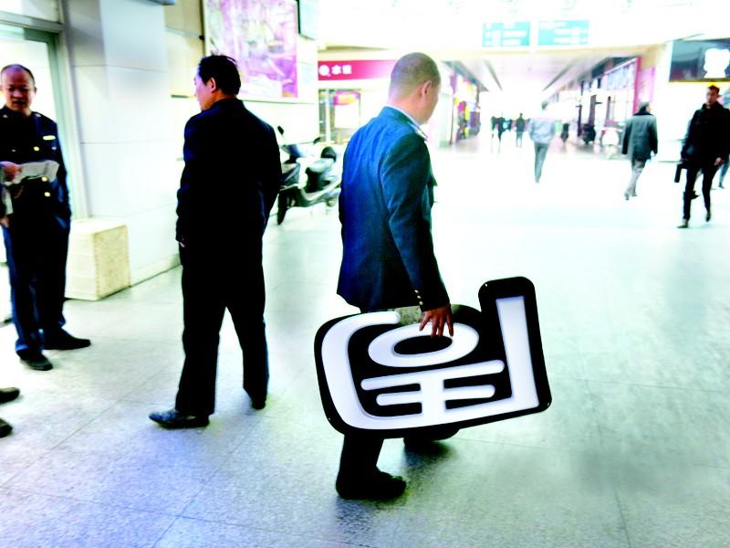 首义路工商所执法队李队长对记者表示,工商所会定期对武昌火车站内的门店进行检查,对假店的招牌会予以收缴,为了震慑违法者,执法队此前还砸过假店的招牌。
