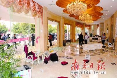 广州伊丽莎白妇产医院遭数十人打砸,大厅玻璃碎落一地。