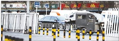 70余根长短粗细不一的地桩近日被有关部分立在刘家窑地铁站的A口外,但近十辆“摩的”三轮车仍畅通无阻地开进广场,并守在地铁口外。在摩的行驶的必经之路上,几个地桩被拔了出来,丢在行人便道的边上。