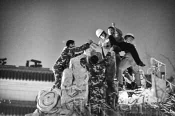 晚7时许,消防队员赶到,一名消防战士想从假山后面悄悄接近史某,不料被其发觉。消防队紧急调来云梯施救,救助站工作人员在史某正面不停地向其喊话吸引其注意力,两名全副武装的消防队员乘云梯靠近史某,另一名消防队员从侧翼爬上假山。