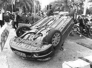 车主误将油门当刹车 轿车翻个底朝天(图)