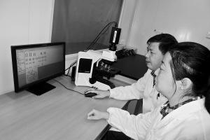 宝鸡妇幼保健院医生察看患病女童的染色体资料