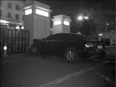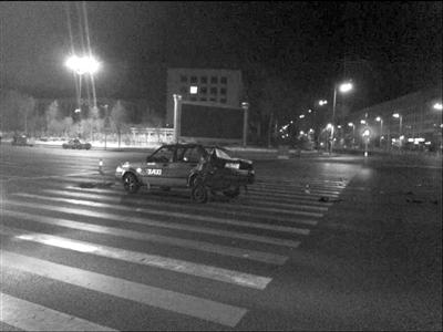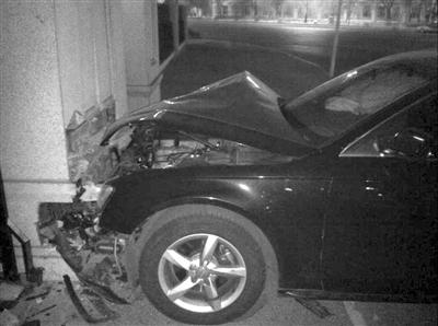 奥迪与出租车相撞 失控撞到省政府门柱(图)