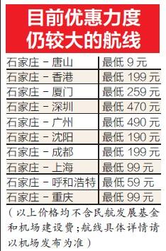 不过,目前,石家庄机场仍有不少航线机票优惠力度较大。