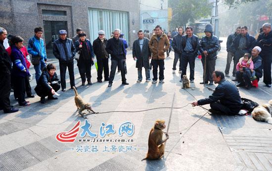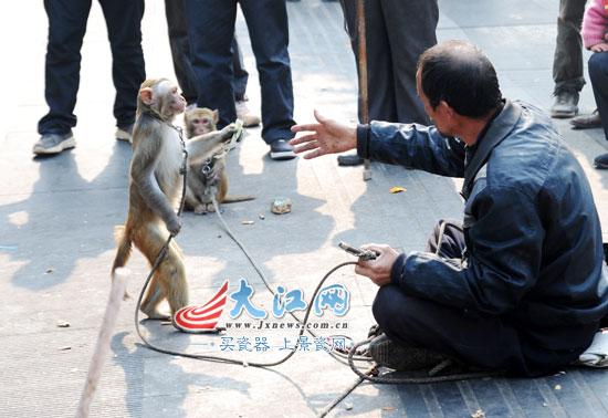 南昌街头再现“耍猴” 市民斥影响市容教坏孩子