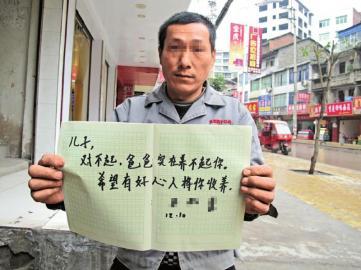 在采访最后,没读过书的王邦奎请记者帮他写下了几个字,希望能带给“11床”和愿意收养他的好心人。“儿子,爸爸实在对不起你,希望能有好心人将你收养。”