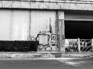 这些立交桥上的涂鸦,大致分为三类:一是属于“艺术型”的涂鸦字画,像四环的四元桥、霄云桥,三环的太阳宫桥、京津塘立交桥下;二是属于“广告型”的标语,几乎各座桥下都有,有的甚至涂在了五六米高的桥顶,如很多立交桥上都被人喷上了“扑克绝技”、“麻将绝技”、“贷款”之类的大字;三是属于“指路型”的路牌,如在三环丽泽桥下就有人用红漆涂上了“东方家园”,在四环的十八里店南桥、五环的阜石路桥下也都有类似的涂鸦。