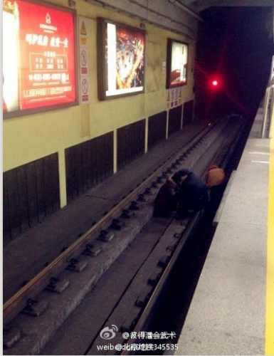 北京地铁一号线东单站3乘客跳站台 部分列车晚点