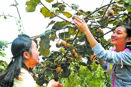 江津,游客采摘富硒猕猴桃。 通讯员 袁孝春 记者 邹飞 摄