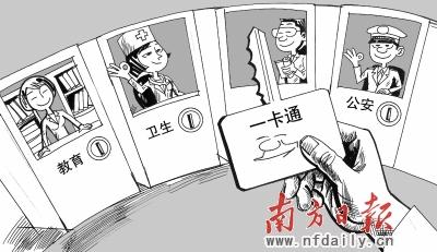 办这些卡成本不菲。目前一张IC卡的发行成本大概20元,以目前广东常住人口人手一张卡计算,多发行一类卡,就要多投入20亿元。卡多了群众办事也不方便。比如,到医院看病,就要随身携带诊疗卡、健康卡、医保卡和社保卡。
