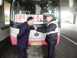途经高新区公安分局交巡警支队二郎大队设立的检查站,公交车停了下来。民警上车检查发现,该车设备齐全,没有超载。