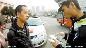 ■肇事逃逸的司机冉某在接受民警盘查