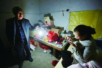 李素兰想从手机里找一个电话,赵作海拎过来家里唯一用于照明的13瓦的节能灯 摄/法制晚报记者 蒲晓旭(记者 蒲晓旭)