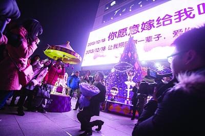 小伙单膝跪地求婚。宋峤 摄
