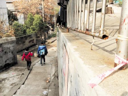 “现在还好,估计下大雨的时候就有点怕了。”另一位居民杨先生说,那些警示牌是社区工作人员在去年设置的,前不久还拉了警戒线。但每天都有不少学生和家长从这里回家,住在下面的居民也要到上面的菜市场买菜,大家都不愿意绕远路,所以也没有顾及社区工作人员的提醒。