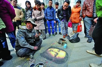 “粉笔画大叔”流浪全国卖艺 专画《蒙娜丽莎》