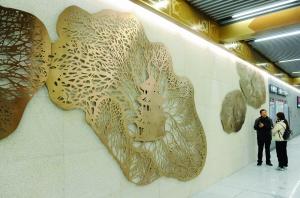 8号线什刹海站的装饰,表现了这一地区的古都水景风情。晨报记者 王巍/摄