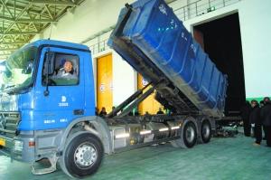 上午10时,一辆满载生活垃圾的蓝色翻斗车,沿着鲁家山垃圾焚烧发电厂的垃圾运输“单行线”,缓缓驶入宽敞的卸料大厅。将卸料大厅与垃圾池隔离的14座铁闸门,平时处于封闭状态,当有垃圾进厂时,四五米高的闸门上方安全指示灯由红变绿,闸门缓慢开启。货车的尾部对准缓缓开启的卸料闸门后,驾驶员一摁电钮,翻斗慢慢升起,在与地面呈60度角时,一车垃圾滑入了垃圾池。
