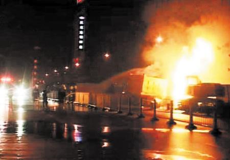 长沙一燃气管道误挖爆燃 火焰冲起三层楼高(图)