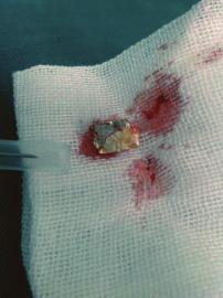 梁军说,锡箔纸的位置在小健喉咙末端,差一点就到肺里了。因为长期受刺激,小健的喉咙长出了一圈肉芽将锡箔纸包围住,左肺里也充满脓水。取出锡箔纸后,梁军用药水将小健的肺冲洗干净,这样小健以后就能正常呼吸了。