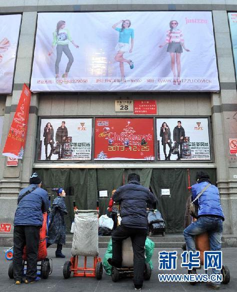 12月25日,动物园附近一处批发市场外,几位拉货的工人正在等生意。记者从北京市规划委获悉,达人“淘衣圣地”北京动物园批发市场已确定外迁,目前正在进行选址,尚未确定迁至市郊还是河北,原址将进行产业升级转型。 新华社记者 李文 摄