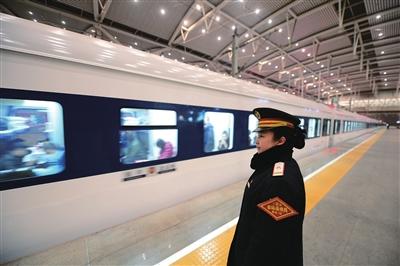 12月28日,银川火车站客运值班员目送T275/6次特快列车离站。