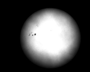 昨日中午,太阳表面的大黑子群。金陵晚报记者 许军 摄