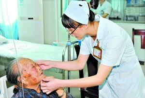 一个年迈的南沙区村民在村卫生站接受专业医护人员的检查。 记者黎旭阳摄