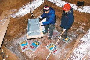 在现场,记者看到两名技术人员的脚下都垫着尼龙质地的塑料袋。杨久明解释说,为了保证文物的原状,提取到更多有价值的信息,他们在脚下作业的地方都垫了塑料袋。不仅如此,每个塑料袋里都装有毯子、布条等柔软的东西,防止留下脚印等痕迹。