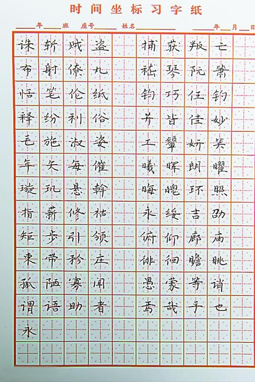 冯子恒觉得,现有的田字格、米字格、回宫格等,在汉字书写时宽松度大,落笔主要凭感觉,让书写者对汉字的结构法则缺乏系统的理解。于是,经过很长一段时间的琢磨,他发明了“时间坐标习字格”。