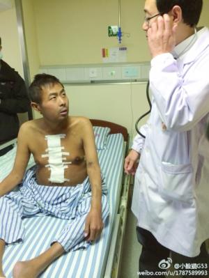 昨天上午,记者来到南京市第一医院,在该院病床上见到了患者李庆奎。他身材瘦削,皮肤黝黑,见到记者后,略有些紧张,记者注意到,他胸口上还贴着厚厚的纱布。据悉,他今年38岁,目前体重65公斤。该院心外科徐明主任医师介绍,他在2001年因扩张型心肌病,在南京市第一医院心外科进行同种异体原位心脏移植术。
