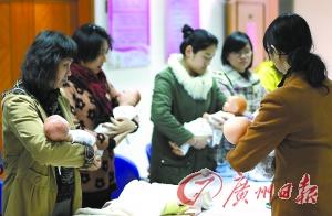 昨日下午,参加培训的学员参观了广州市人力资源市场妇联分市场服务中心。据了解,在该中心每月举办的家庭育婴班上,近两年出现了不少爷爷奶奶的身影。