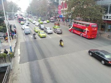 昨日,记者来到江阳北路与迎晖路口交界处。由于此处修建了人行天桥,原本地上的人行横道被沥青混凝土给覆盖。