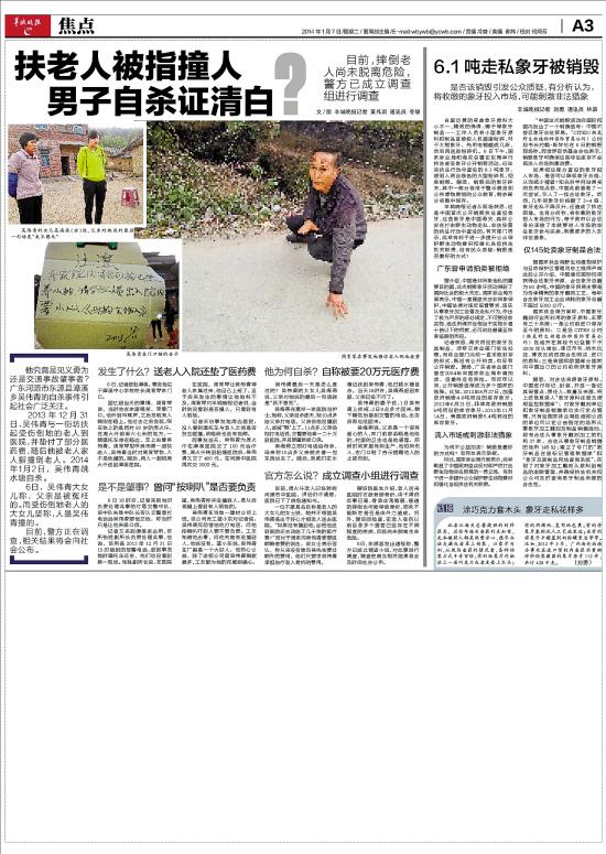 广东河源东源县漳溪乡吴伟青扶老人事件(详见本报昨日相关报道)真相如何?7日,记者致电东源县公安局,该局有关负责人回应称,此事事关重大,尚在进行基础调查工作,暂无结果。