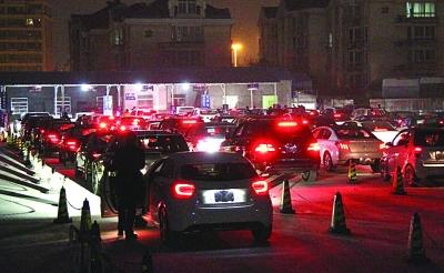 7日晚,南京车管所上牌点好多新车在排队等着连夜上牌。 郭一鹏 摄