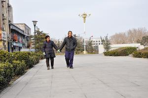 去年5月起,每天凌晨5时,孔群锁便照顾妻子起床,搀扶着到广场上遛弯儿锻炼。“刚开始时,她还要搀扶着,现在拉着手就能走了。”孔群锁说,从早到晚,只要有时间,他们都会在广场遛弯儿,每天都走上几个小时。