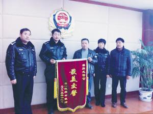 图为吕先生(右三)向潘旗龙(左二)赠送锦旗 图片来源:绍兴日报