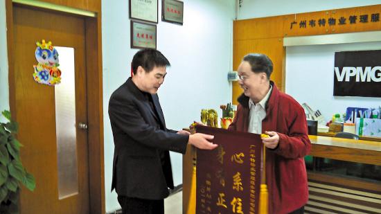 物管获赠锦旗,曹先生一家很感谢物管公司人员帮他们找回失款