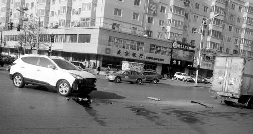 昨天11时,一辆白色私家车行驶至铁西区红粉路与艳华街交叉口时,突遇一辆厢式货车。两车躲避不及,发生碰撞,私家车前脸受损,厢式货车尾灯被撞坏,车祸未造成人员伤亡。目击市民称,车祸发生时,红粉路和艳华街交叉口的信号灯并未亮起。