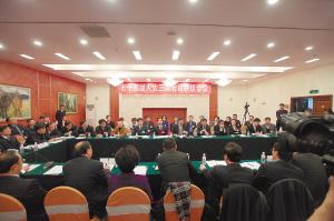 市十四届人大三次会议联组会议现场。