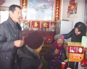 王玉军和志愿者看望牺牲战友的父母。通讯员 叶方龙 摄