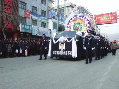 洮河呜咽悼英灵,岷山颔首送忠魂!昨日,定西市岷县公安局院内哀乐阵阵,素幛高挽。1月8日奉命抓捕贩毒嫌疑人不幸以身殉职的岷县禁毒大队副大队长邵彦鹏同志追悼会在这里举行。邵彦鹏60多岁的双亲老泪纵横,弱妻爱女跪地长泣。数百名公安民警、数万名干部群众顶着严冬的寒风,从县城的四面八方聚集到岷县公安局,含泪送别邵彦鹏。
