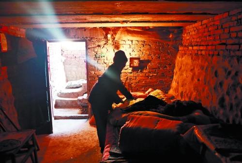 陈武现的母亲冬天住在简陋的地下室里