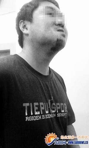 谢先生下巴共缝了6针。记者 马晨 摄