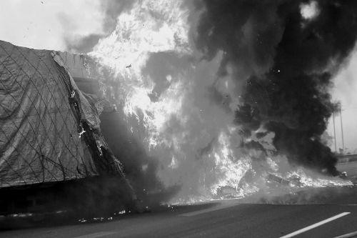 高速路上货车突然起火 熊熊大火蹿出十余米(图)